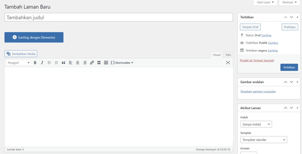 Kolom Laman attribut ini berada disebelah kanan kolom editor dan di bawah kolom Terbitkan.